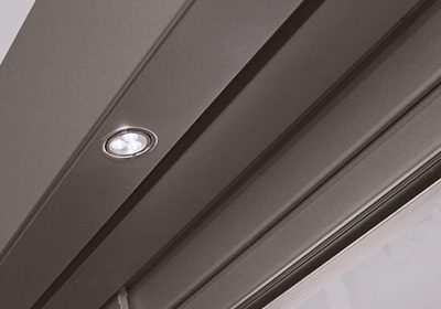 LED- Beleuchtung am Wandanschluss, unter den Sparren und in der Rinne möglich. Freistehende Konstruktion möglich. Garantierte Stützweite bis 6,68m.