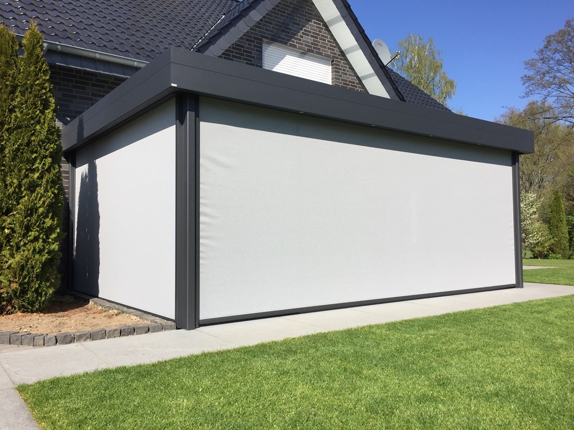 Ob Hitze- oder Sichtschutz, Lounge Sommergärten lassen sich auf dem Dach und an den Seiten zu 100 % beschatten.